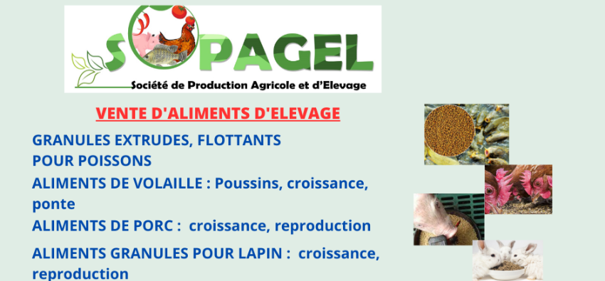 SOPAGEL-CI est une entreprise agricole et d'élevage qui s'est spécialisée dans la pisciculture(élegage en étang de tilapia gris, rouges et hétérotis appelé cameroun), mais aussi dans l'aviculture(production et vente de poulets hybrides, de poussins d'un jour, d'oeufs fécondés, d'oeufs de table) . La structure dispose de sa propre provenderie située à Adzopé qui la rend autonome en matière d'aliments pour ses élevage. Notre produit vedette est l'aliment extrudé flottant pour poissons dont nous somme l'un des rares producteur en Côte d'Ivoire.