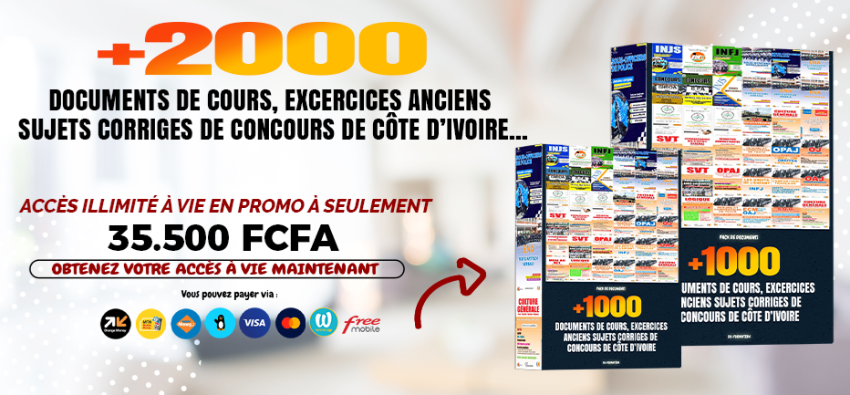 DÉCOUVREZ NOTRE PACK COMPLET DE + 2000 DOCUMENTS DES CONCOURS DE CÔTE D'IVOIRE ET D'AILLEURS. (COURS, EXERCICES ET ANCIENS SUJETS CORRIGÉS EN PDF).