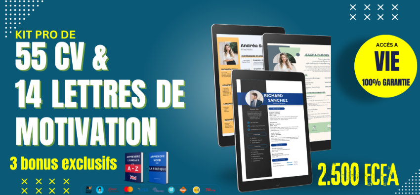 F?licitations ! Vous ?tes sur le point de transformer votre carri?re avec notre Kit de 55 CV et 14 Lettres de Motivation Professionnels !